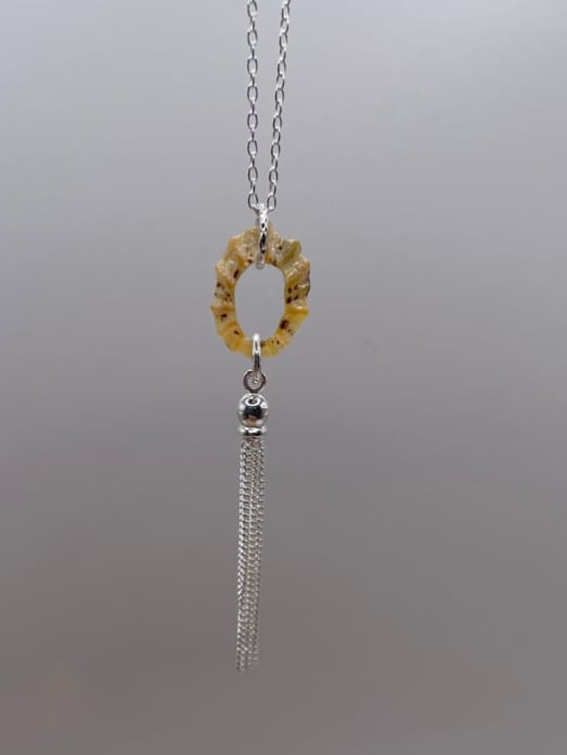 Sea Worn Limpet Shell and Sterling Silver Tassel Necklace